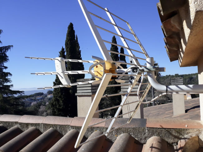 muntatge d´una antena de t.d.t. televes a una comunitat de veins al carrer de can noguera,a la garriga.