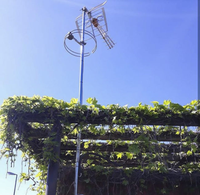 Integració d´una antena de t.d.t. televes en una pergola de jardi a l´ametlla del vallès.